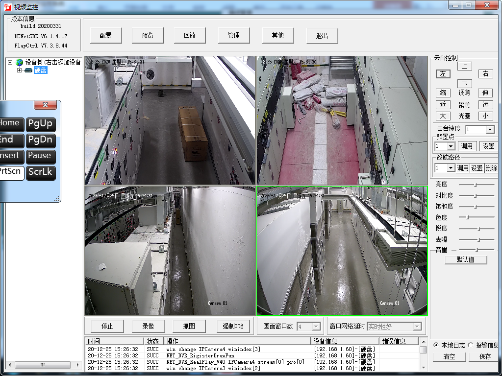 在人機界面中,可以直接查看該配電室各個攝像機的監控畫面。