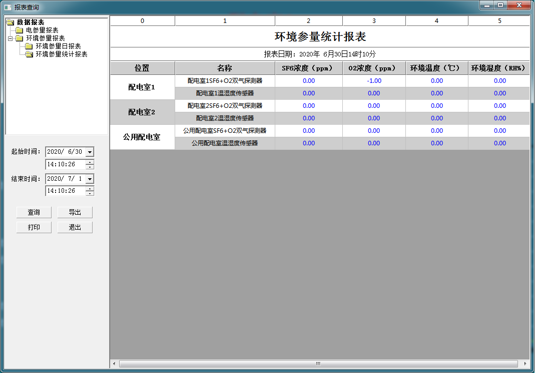 查詢各回路或設備指定時間的運行參數,報表中顯示設備信息應包括配電室溫度、濕度、有害氣體等參數信息.