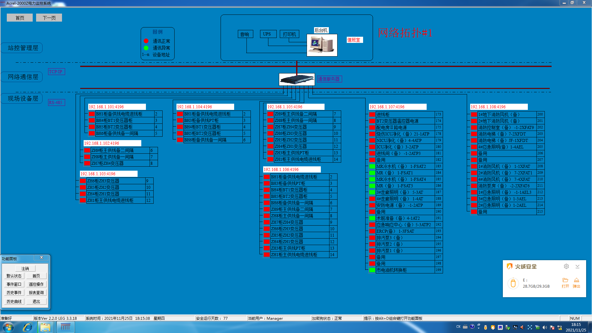 站控管理層:設有高性能工業計算機、顯示器、UPS電源、打印機等設備。監控系統安裝在計算機上,集中采集顯示現場設備運行狀況,以人機交互的形式顯示給用戶。