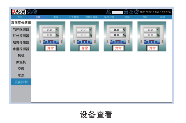 用戶可在設備界面查看當前所有采集設備,點擊左邊列表上的不同設備名稱可以查看對應設備的通信狀態以及監測數據。
