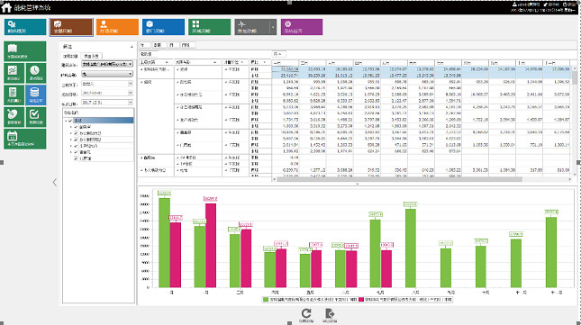 系統依據住建部分類分項能耗數據采集導則,將建筑物耗電分為照明插座、空調、動力和特殊用電進行計量裝置選型和設置,并按用能區域或功能區域等劃分并進行統計,以報表和同、環比棒圖形式展現該區域的能源消耗。